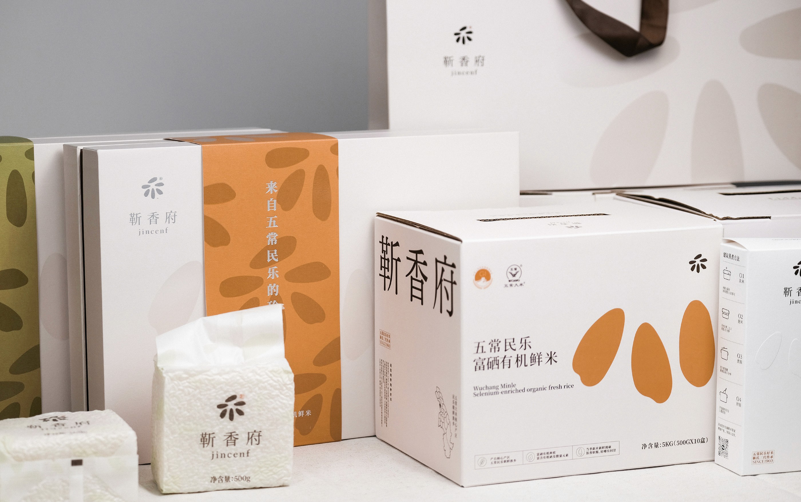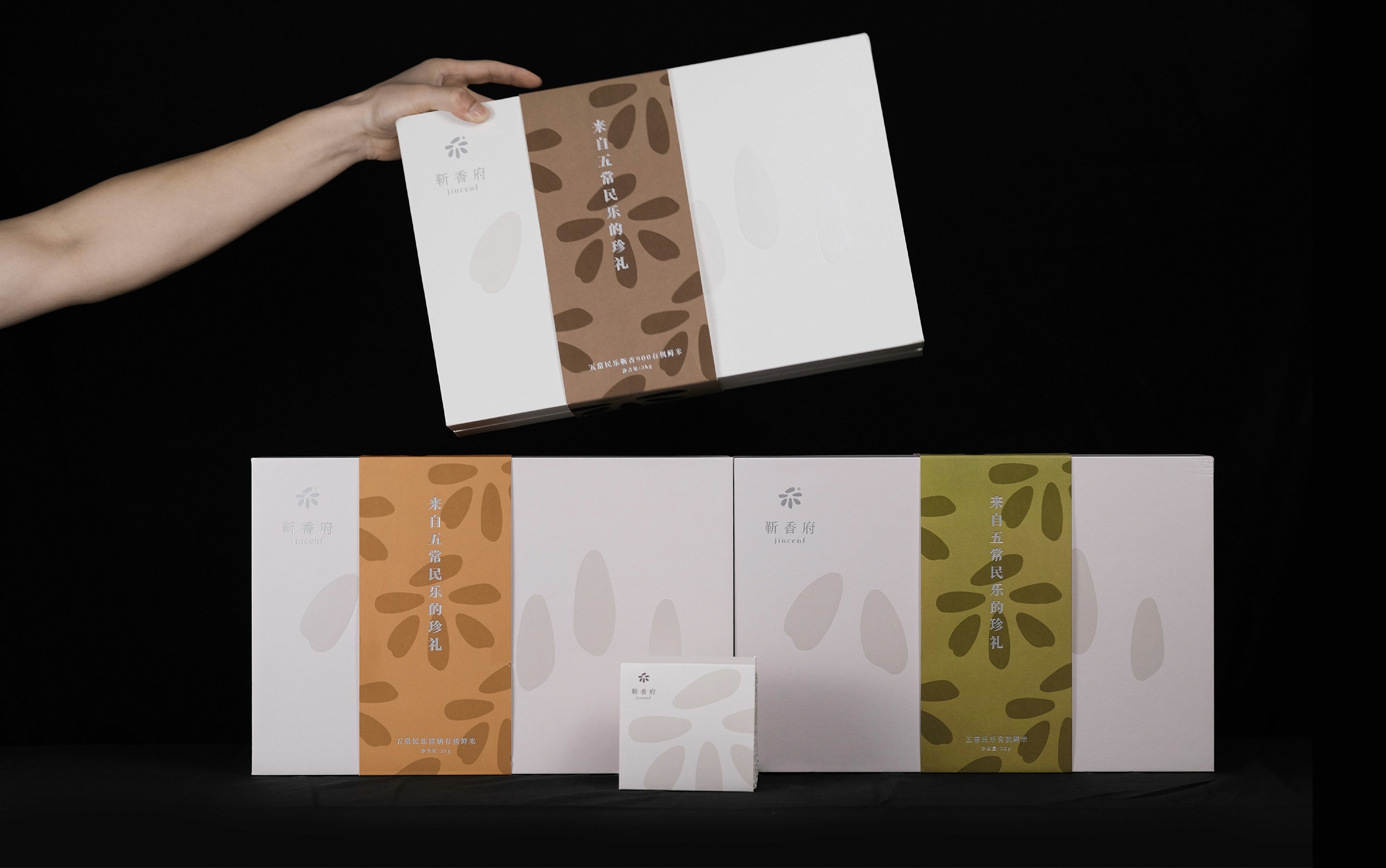 We returned to the brand name itself. "Fragrance" is the most intuitive feature of the brand. Starting from "fragrance", we returned to the origin of nature and extracted “禾” which means rice and the original form of rice. In the brand font design, based on Song Dynasty, the arc of rice in the graphics is continued to be used in the processing of font strokes to unify the visual experience.